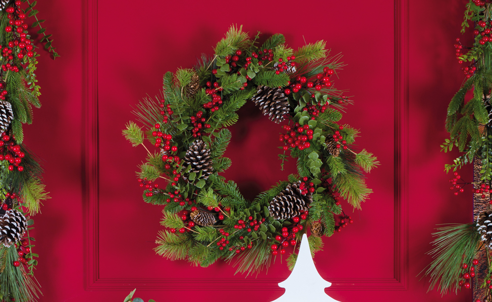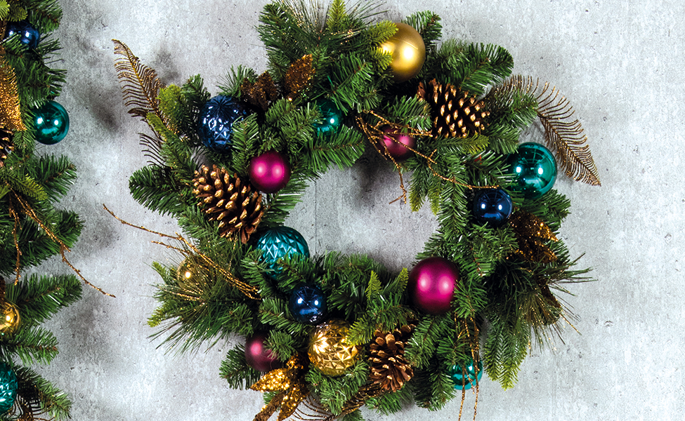 Tannenkranz, Ø 70cm, PVC/Textil, mit Efeu+Zypresse, warm-weißes Licht, für Aussen