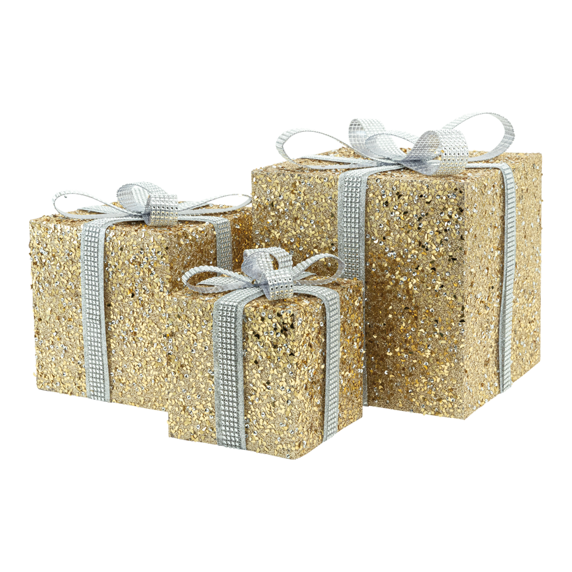 Geschenkboxen, 29x26x25cm, 24x20x20cm 19x15x15cm 3 Stk./Set, aus Kunststoff/Metall, beglittert, ineinander passend