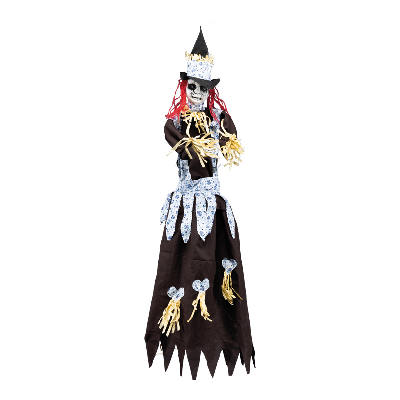 Gruselfigur, 120x35cm aus Kunststoff/Stoff/Papier, 3x LR44 Batterien erforderlich, bewegliche Arme