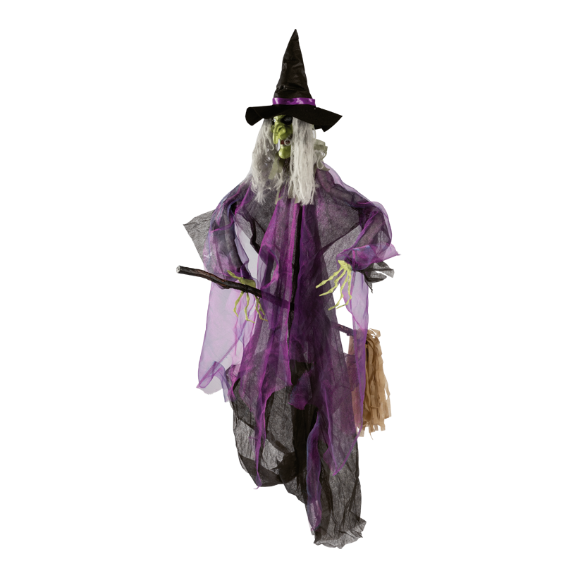 Hexenfigur, 213x168x21cm 3x LR44 Batterien erforderlich aus Stoff/Kunststoff, Augen blinken, bewegliche Arme, macht Geräusche