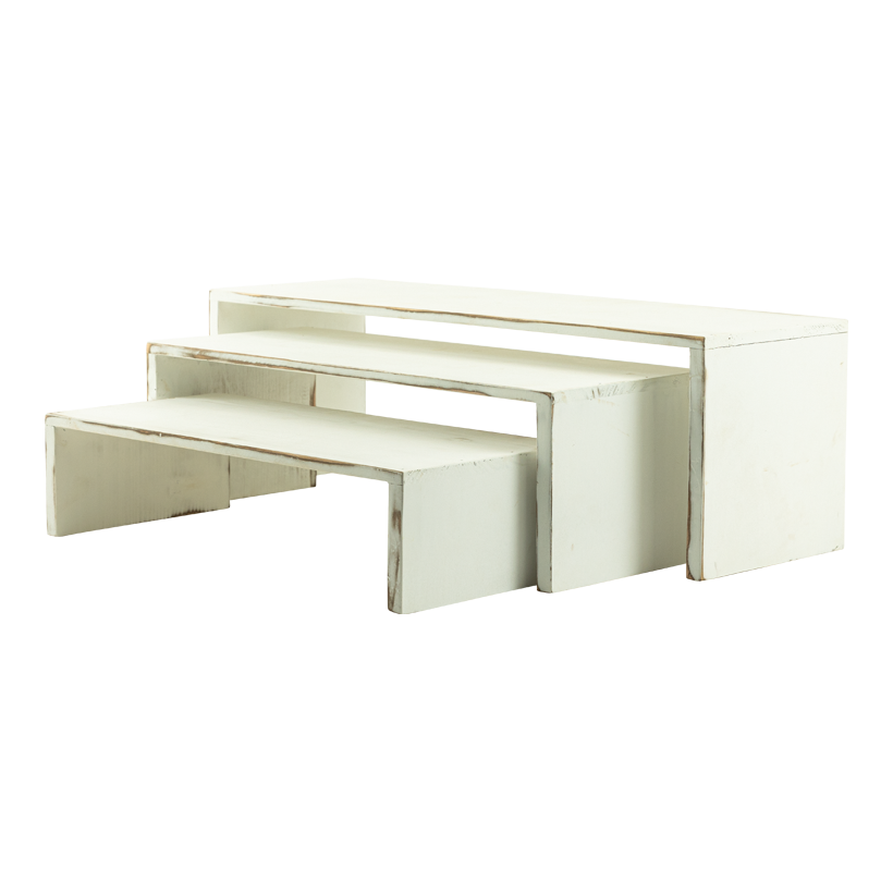 Produktinformationen "Holzpräsenter im 3-er Set, 1: 56x18x18cm, 2: 47x17,5x14,5cm, 3: 42x17,5x10cm 0"
