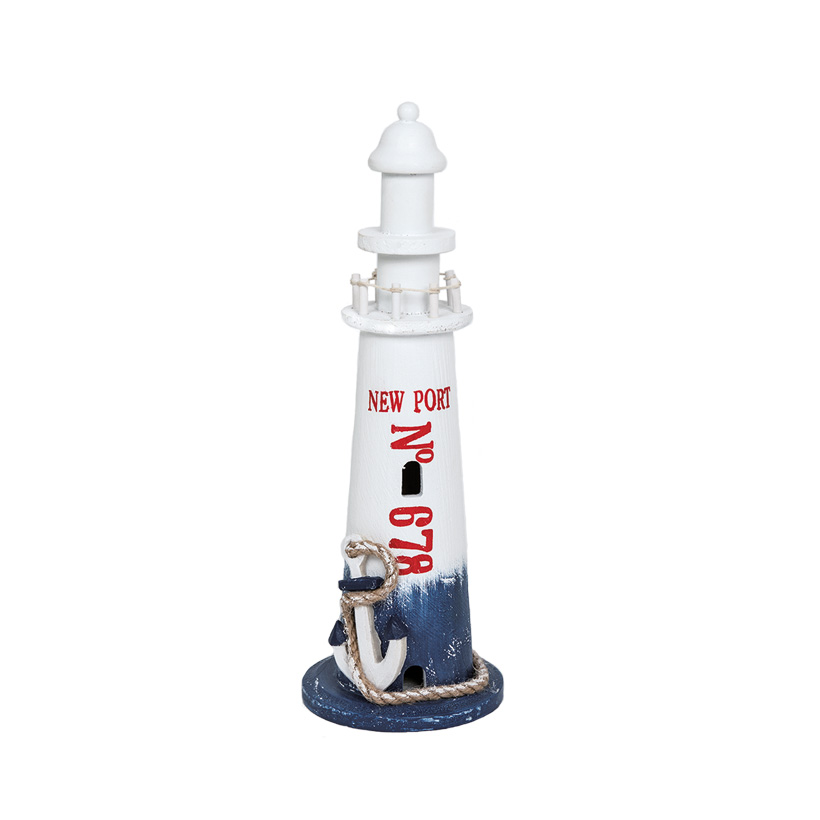 Produktinformationen "Leuchtturm aus Holz, 34x11,5cm mit Seil und Anker, No. 678"