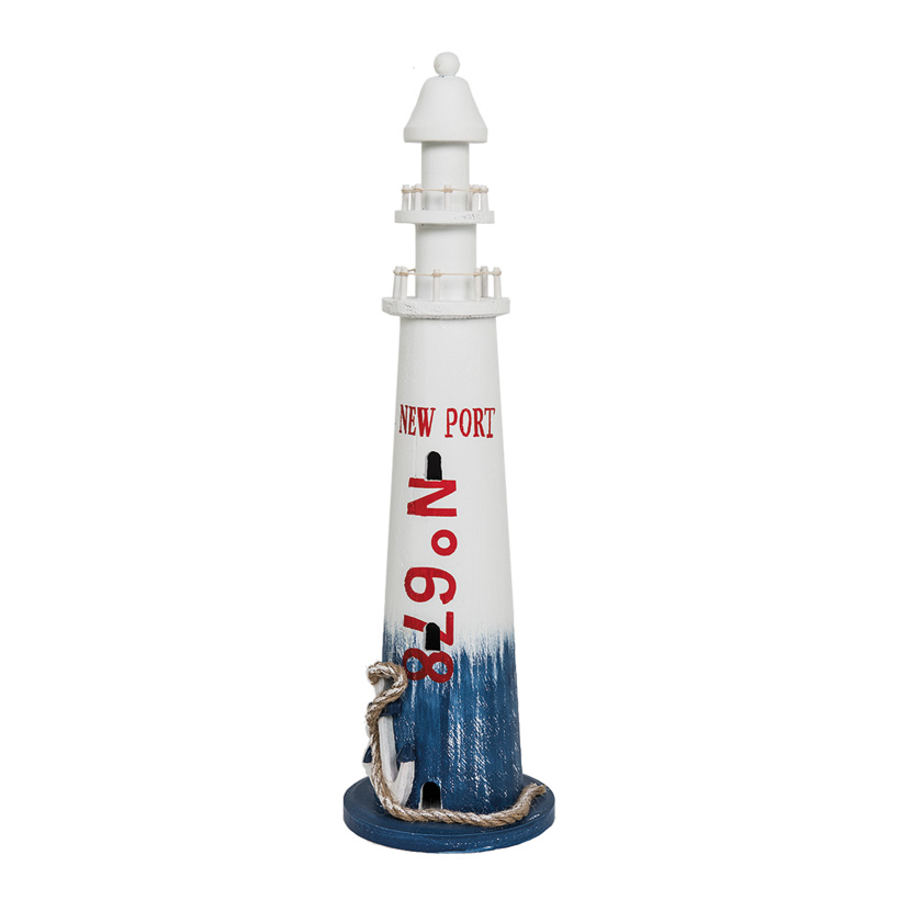 Leuchtturm aus Holz, 57,5x16cm mit Seil und Anker, No. 879