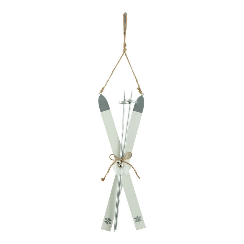 Produktinformationen "Skier, 33x10x3cm 4-fach, aus Holz/Kunstfell, mit Hänger"
