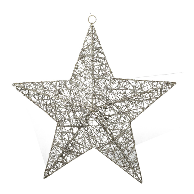 Stern, 3D, 30cm, beglittert, Metallrahmen mit Holzfaser umwickelt