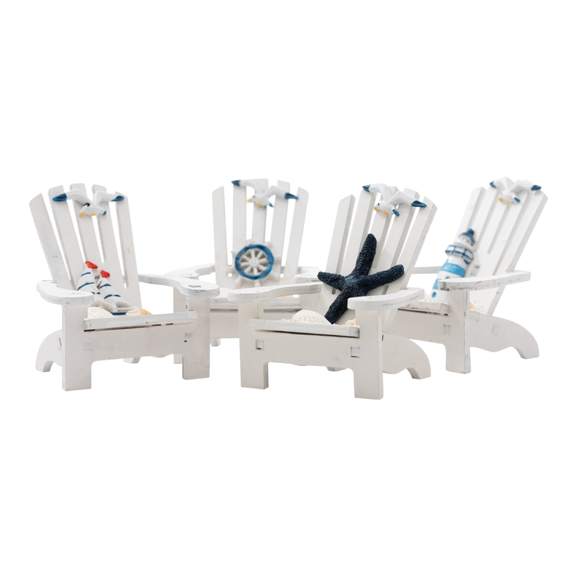 Strandstühle mit Deko, 9x9x7cm 4 Stk./Set, aus Holz