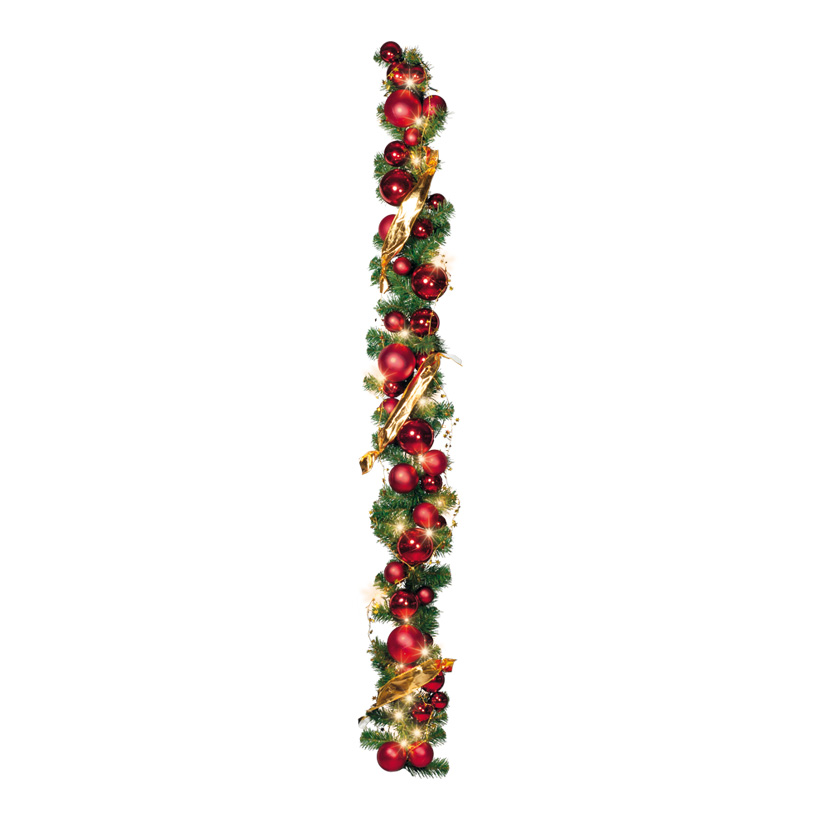 Produktinformationen "Tannengirlande, 180cm, geschmückt, mit 50 LED, warm/weiß, Stecker: 2,5A, 250V"