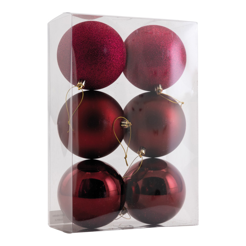 Weihnachtskugeln, ø 10cm 6 Stk./Blister, aus Kunststoff, sortiert, mit Hänger
