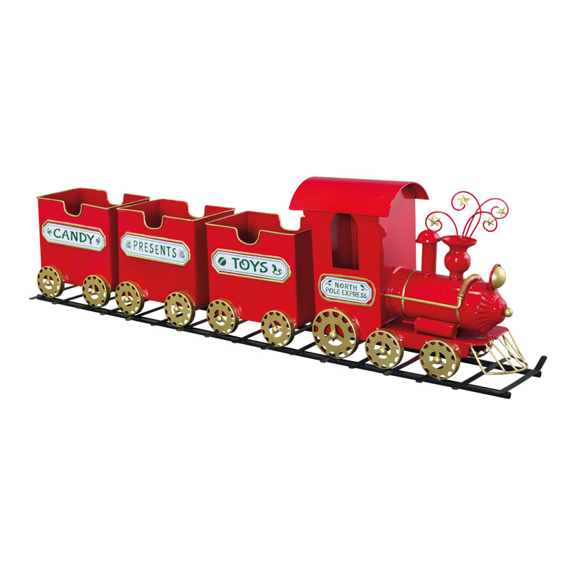 Produktinformationen "Zug, 93x18,5x29cm mit 3 Waggons, auf Schiene, aus Metall"