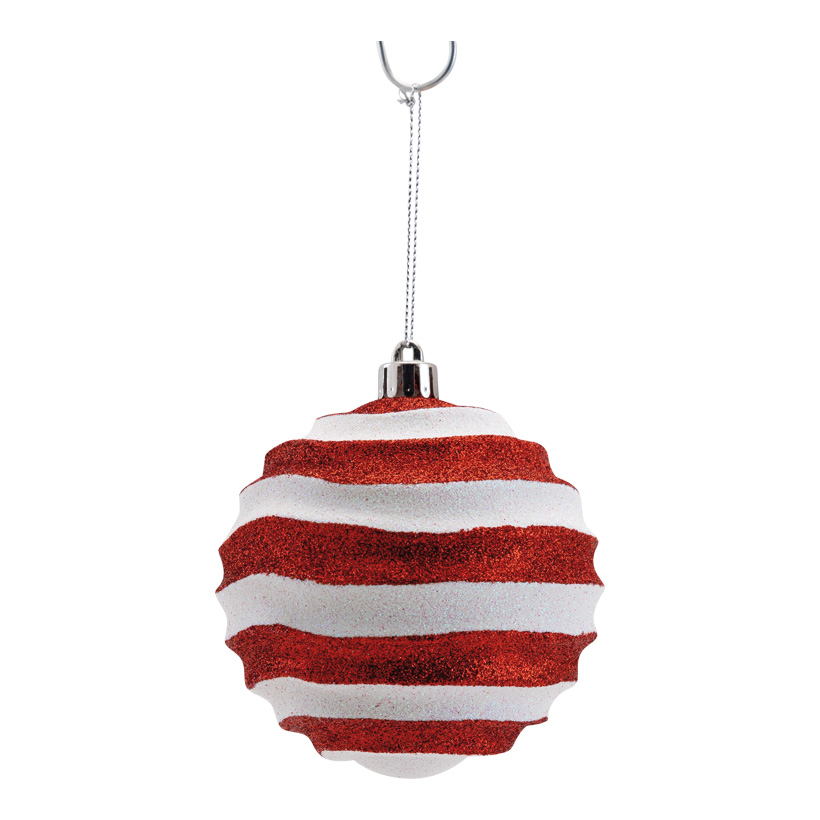 Informations sur le produit "Boule de Noël, ø 10cm en plastique, ondulé, assorti, avec suspension"
